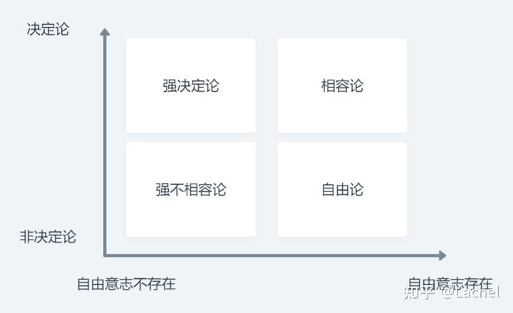 因此,在现代哲学中,关于自由意志的立场,一般存在四种:
