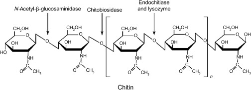 哺乳动物身体内主要就壳三糖酶(Chit1)和酸性哺乳动物几丁质酶(AMCase)具有一定消化几丁质的能力,但消化能力非常的有限,都不足以高效降解大分子几丁质[1]。