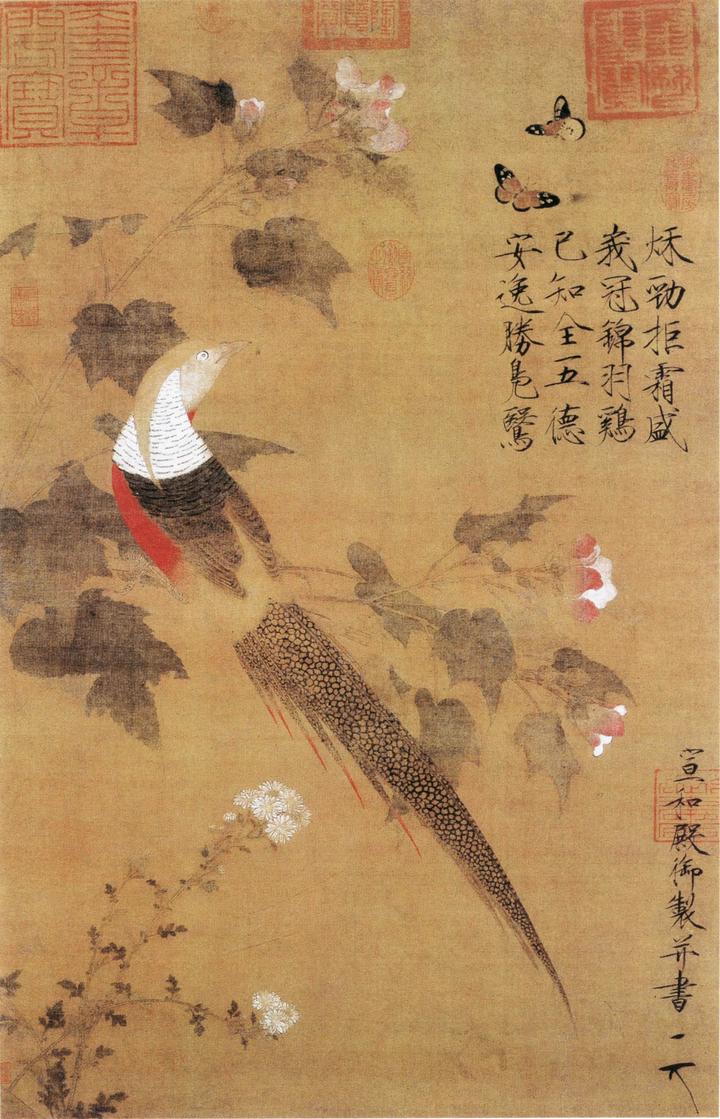 我们现在没法判断赵佶是在野外采风的时候遇到了这样一只杂交锦鸡,还是画了一只人工饲养环境下出现的杂交锦鸡。在当时,人们已经掌握了这两种锦鸡的饲养技术,这两种锦鸡在人工环境下也经常发生杂交,时至今日,网上还有很多鸡场会出售这些杂交锦鸡。而在自然环境下,两种锦鸡也有一些分布区域重叠,比如我国的西南地区,研究人员就野外拍摄过它们的野外杂交个体。