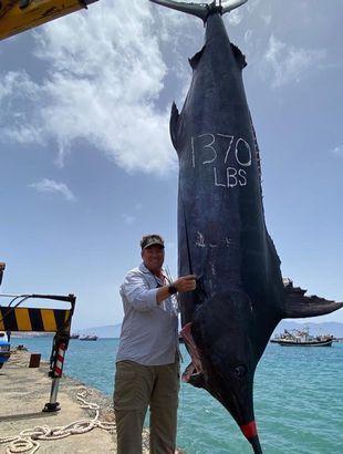 最大能长到 18.8 米。(2001 年 5 月 8 日印度古吉拉特邦维拉瓦尔阿拉伯海捕获)