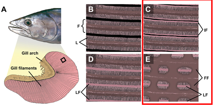 为适应撞击式呼吸,不少鱼类鳃小片与鳃丝发生融合。以满足高速游泳的氧气需求