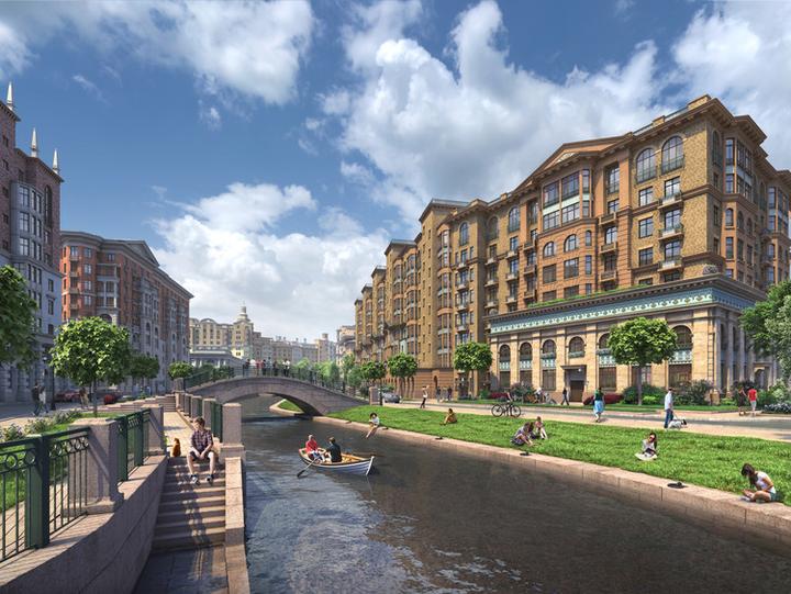 时过境迁,如今的独联体国家,苏联式小区的子子孙孙们依然还在不断诞生,并且有更丰富的细节和更个性化的居住环境,延续着上世纪的那批建筑先驱的理想。然而,很多趋势还是在不可避免地发生:小区不再都紧邻工作单位,配套设施虽有保留但也逐渐简化,建筑后退红线也不似先前那般惊人。甚至近些年,就在莫斯科的郊区,下面这个项目的建设正在如火如荼地进行中: