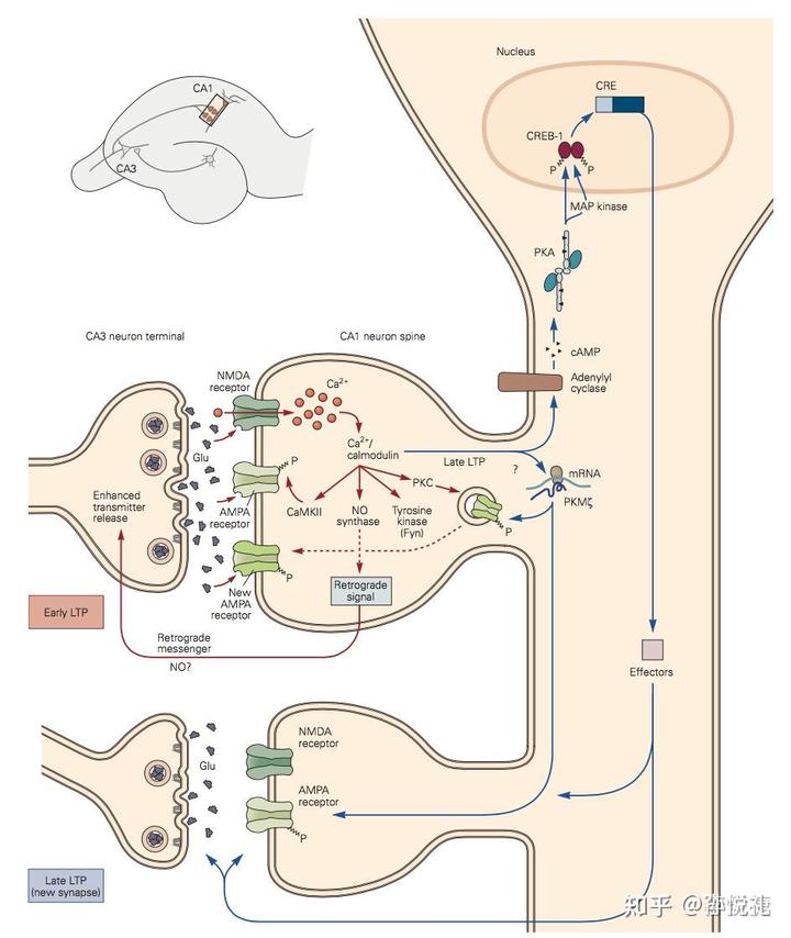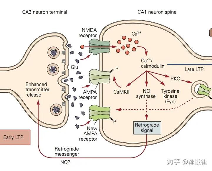 大量研究就曾报道过突触内“长时程增强”(LTP)和“长时程抑制”(LTD)的记忆相关的分子机制。