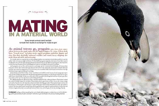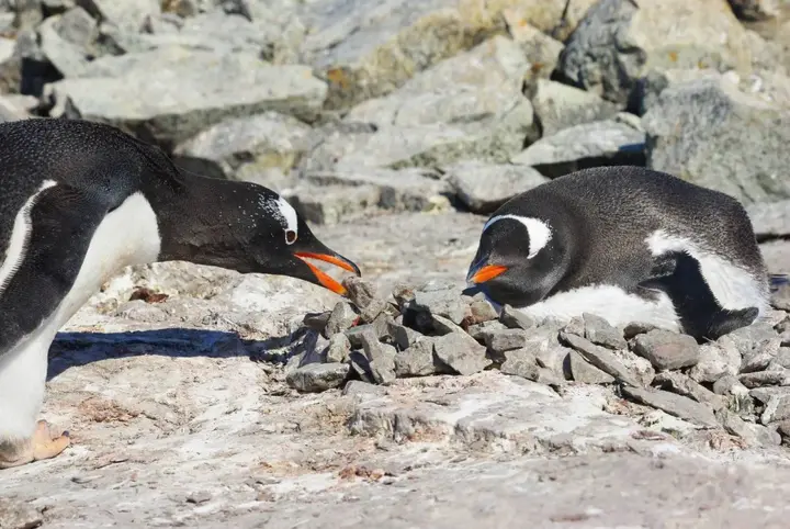 雄性企鹅(巴布亚企鹅或阿德利企鹅)会煞费苦心地搜寻整个海滩,只为找到那颗“最完美”、“最光滑”或“最漂亮”的卵石 。