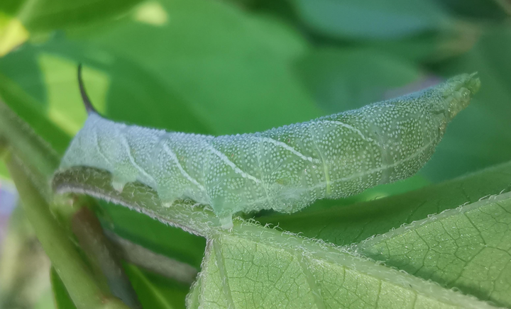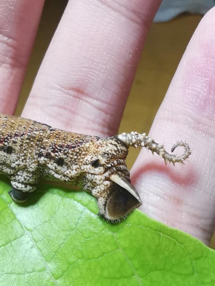 你可能会好奇这个尾角能不能收集些气味、声音信息啥的;然而很多其它天蛾幼虫不会摇尾巴。