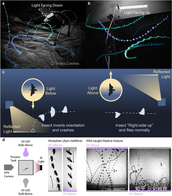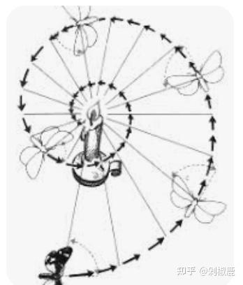 其实是昆虫它们习惯于将光源与飞行路径保持恒定角度。通常,太阳(或夜间物种的月亮)是唯一的光源,以这种方式飞行很巧的飞出来刚好几乎是一条直线。