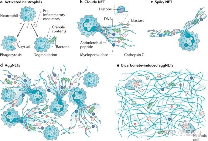 再加上喷射出来的东西不止是 DNA,还有 elastase, myeloperoxidase, cathepsins 之类的比较“粘”的蛋白质,对很多其他蛋白分子的粘附性都很高,对病原体也很有杀伤性。