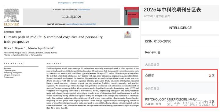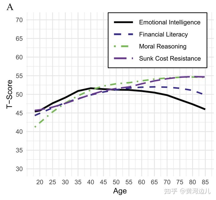 总之,这篇《Intelligence》的文章是通过加权平均 16 个特质得出了人的认知人格综合指数在 55–60 岁最高,并没有宣称大脑功能在 55–60 岁达巅峰。那这个指数背后反应的是人的知识储备 + 情绪稳定 + 责任心 + 道德 + 赚钱能力 + 抗沉没成本 + 共情能力等综合实力最强,原文写到: