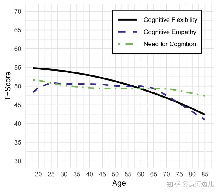 14、认知灵活性(cognitive flexibility),下图的黑线年龄越小值越高。