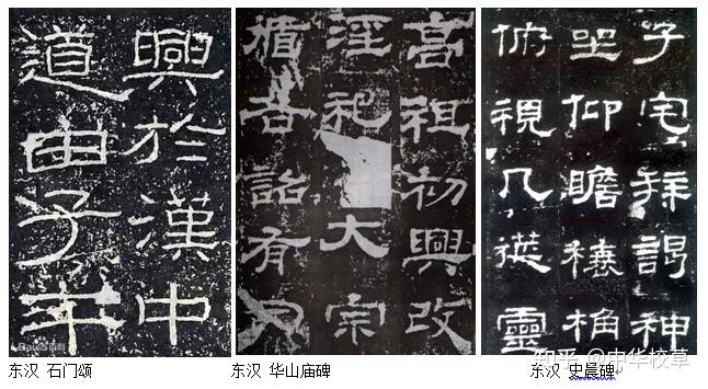 当汉代发明和运用纸张以后,书写不再受窄长的竹木简的限制,毛笔的性能得到充分的发挥,发展出了汉隶,汉隶突破了秦篆单一的中锋运笔, 中锋、侧锋、方笔、圆笔、藏 锋、露锋各显神通。最有代表性的是“蚕头雁尾”的笔画,破除整齐划一的单调。在字的结构上改变了小篆拟横扬竖的趋势,字势向横伸展,成熟的汉隶在书法史上是一个重要的转折点。