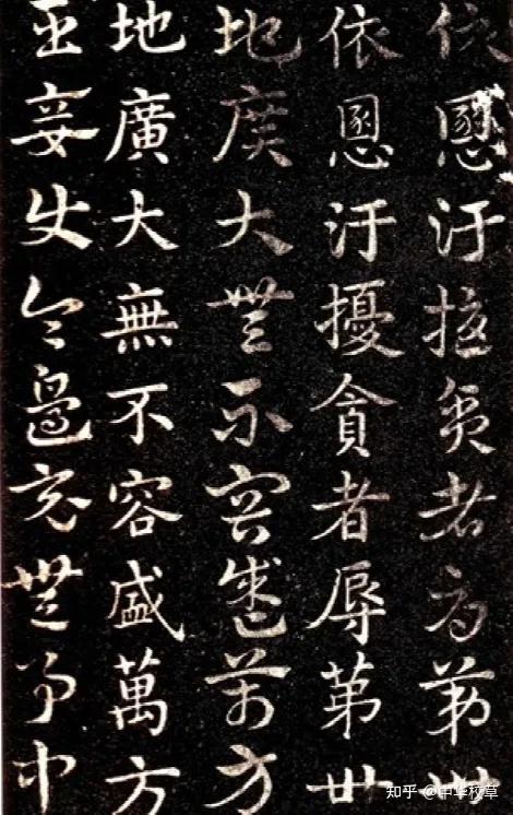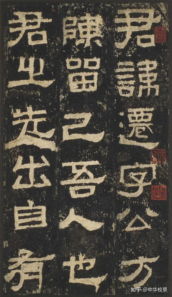 字形扁方左右分展隶字改以横向(左右)取势,造成字形扁方。起笔蚕头收笔雁尾隶书用笔上的典型特征,特别是隶字中的主笔横、捺画几乎都用此法。