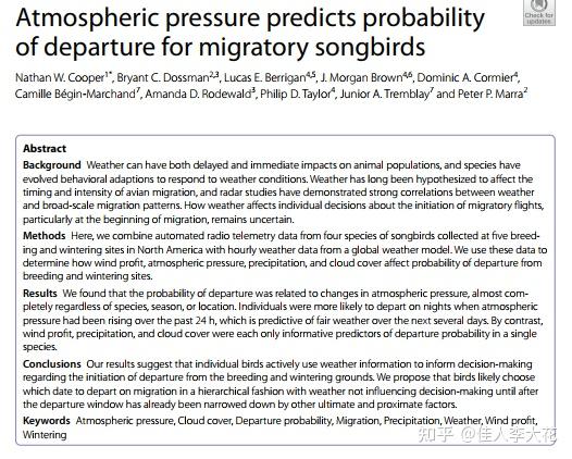 相比之下,风力、降水和云量仅在个别物种中显示出对出发决策的影响。