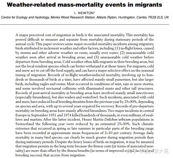 有人专门研究过与天气相关的迁徙鸟类大规模死亡事件: