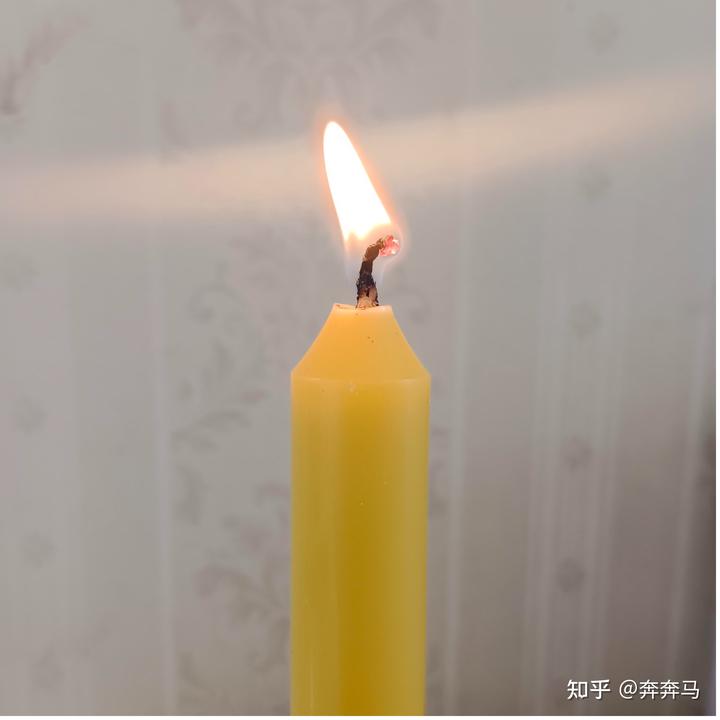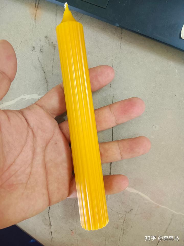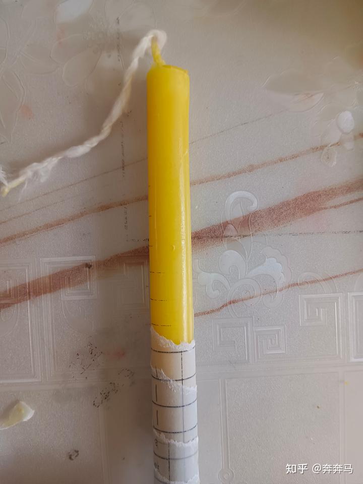 说干就干,我用 A4 纸简单卷了一个纸筒,在纸筒中拉好棉线,再将熔化的蜂蜡趁热倒入纸筒中,凝固后就做成了一根蜡烛。试着点燃,能稳定燃烧,燃烧过程中也没有异味,完全不逊于小时候停电后印象中的石蜡蜡烛。