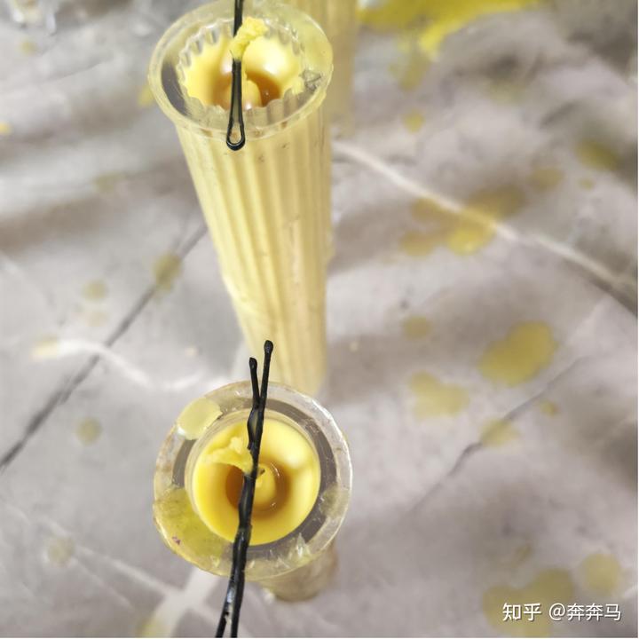 可是,用专业模具做出的蜡烛,成品总是有好有坏,比如有的表面会粘模具壁,蜡烛尾部凹陷严重,有的蜡烛会产生明显分层,有的棉线不在蜡烛中间,燃烧后“流泪”严重,有的蜡烛颜色发黑,丧失观赏价值……
