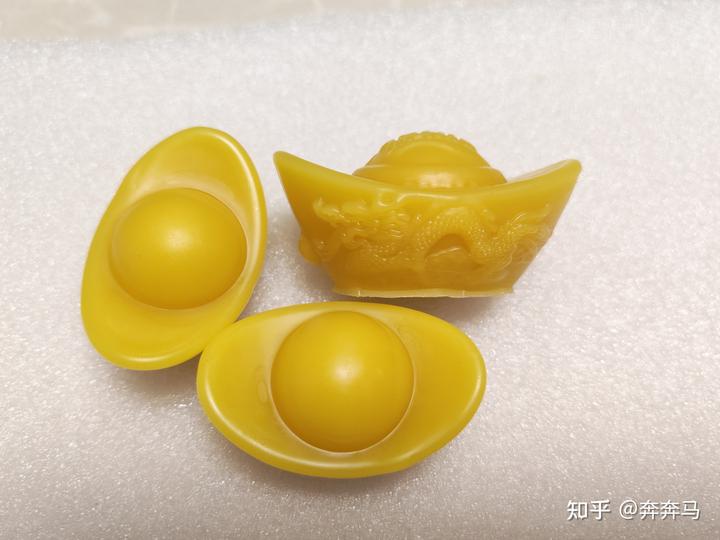 于是,我就尝试让蜂蜡更纯净的方法,在摸索了一个星期后,摸索出用两次熬蜡、分粗细两次过滤的方法,得到了纯净的蜂蜡,倒进模具凝固后,明显的艳黄色,很是漂亮!
