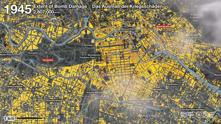 盟军在二战后期对柏林的轰炸,造成了被称为“人类历史上最大的建筑废墟”:柏林城超过一半的城区被夷为平地,核心城区几乎被完全摧毁,几百年的积累荡然无存。