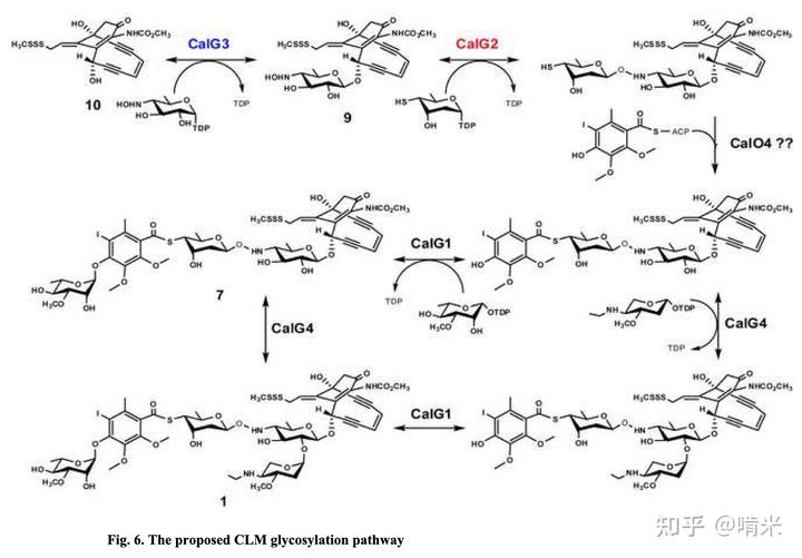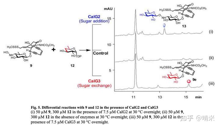 至于那个特殊的羟胺类 N-O 糖苷键,是你埋在这个制导系统里的一道保险栓,当环境威胁解除,留着这么多高毒的弹药对自己也是个威胁,所以用这个特殊的 N-O 键作为后门,方便拆卸,剩下的裸弹头由于失去了锚定 DNA 的能力,其毒性会断崖式下降 。为了节省能量,负责拆卸和组装的酶是同一套糖苷转移酶(CalG)(反应可逆),如此也符合原子经济性,战时能快速调配组装出武器。