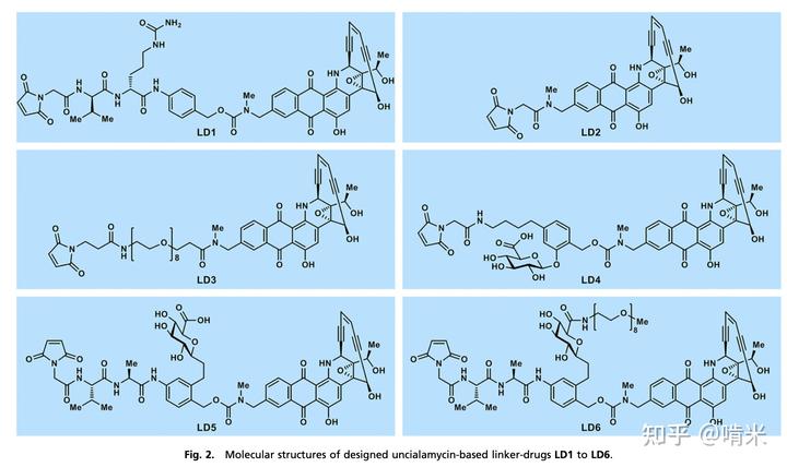 而新一代以环张力更小的 Uncialamycin 为载荷的烯二炔类 ADC 也正冉冉升起,毕竟只要抗体带路到肿瘤细胞,切不切 DNA 并不是最重要的,在里面嘎嘎乱杀弄死肿瘤细胞就行,所以四糖单元并不是必需的。如此一来,合成也能简单很多,少了糖环和 N-O 键,又扩成 11 元环,化合物稳定性也得到了显著提升。