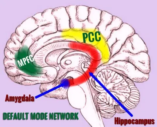 你可以理解为这是你大脑的一块底层功能区,一直在后台运行。它主要负责关注自身、回忆、感受情感、自我调节、情绪排异等等。