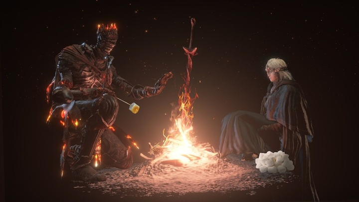 是浴血摸黑拼杀的不死人闯过一张昏暗地图遇到一点零星火光;是长途跋涉上山下海的冒险者在野外扎下营地升起篝火;是几个多姿多彩、性格迥异但相伴同行的角色,围在火边享受片刻的宁静。
