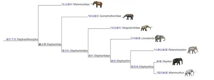 在先后将厄立特里亚象属、半乳齿象属、古乳齿象属、渐新象属等类群分离出去之后,象形亚目的冠群就是象形下目: