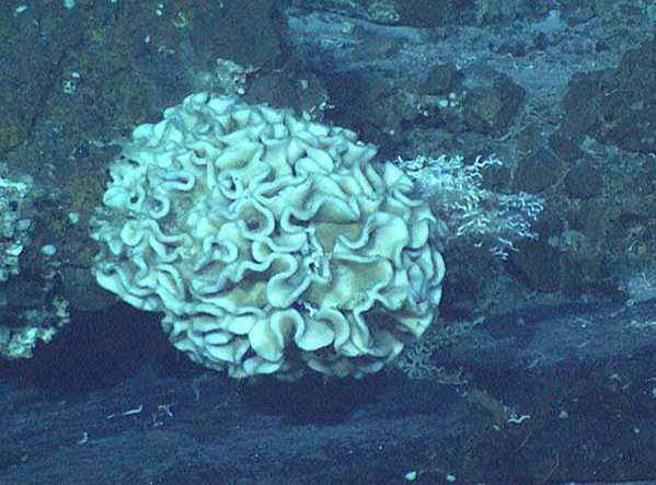 在大洋深处的海床上,还生活着一种在互联网上广为流传的神奇生物。其学名唤作脆性介壳虫(Syringammina fragilissima),同样是合胞体形态的单细胞生物,最大个体直径能超过二十厘米。不过,大家记住的恐怕并不是它的大名,而是它所属类群的名字——异食藻纲(Xenophyophorea)。如果你从未听说过这类生物,那么恭喜你,它们可能会当着你的面把你的生物学常识按在地上摩擦。不过,还是让我们先看看它的尊容再说:
