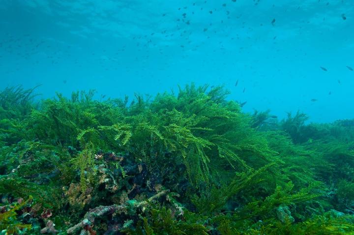 言归正传,刚才所说的那种能长到三米的单细胞生物叫做杉叶蕨藻(Caulerpa taxifolia),不出意外的话也应该是已知最大的单细胞生物了(不敢确认,欢迎挑战)。它属于绿藻门(Chlorophyta),是一种营光合作用的大型海藻: