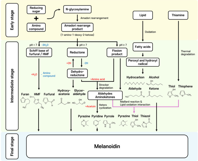 美拉德反应产生的化合物有数百种。[8]