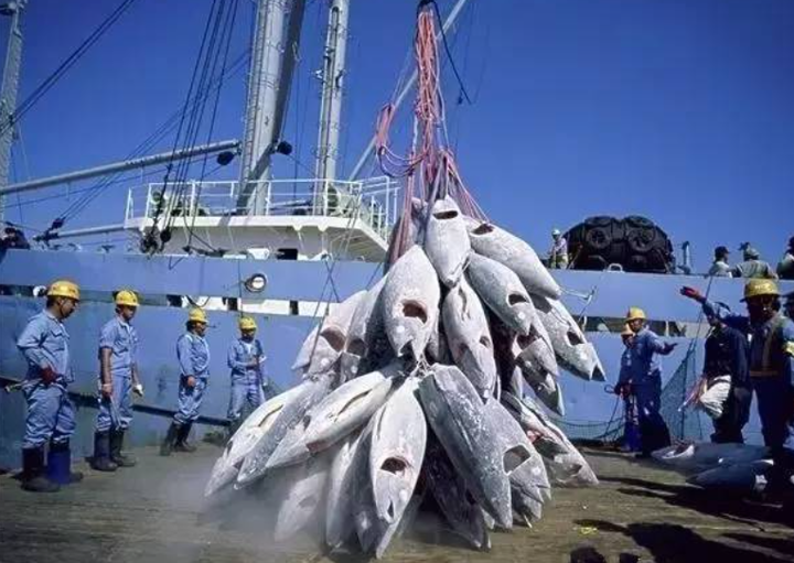 这应该是个金枪鱼加工厂驳接的过程,