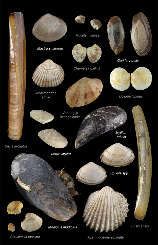 ↑双壳纲的代表,囊括了各种长着两片壳的贝类,比如花蛤、竹蛏、贻贝、河蚌等