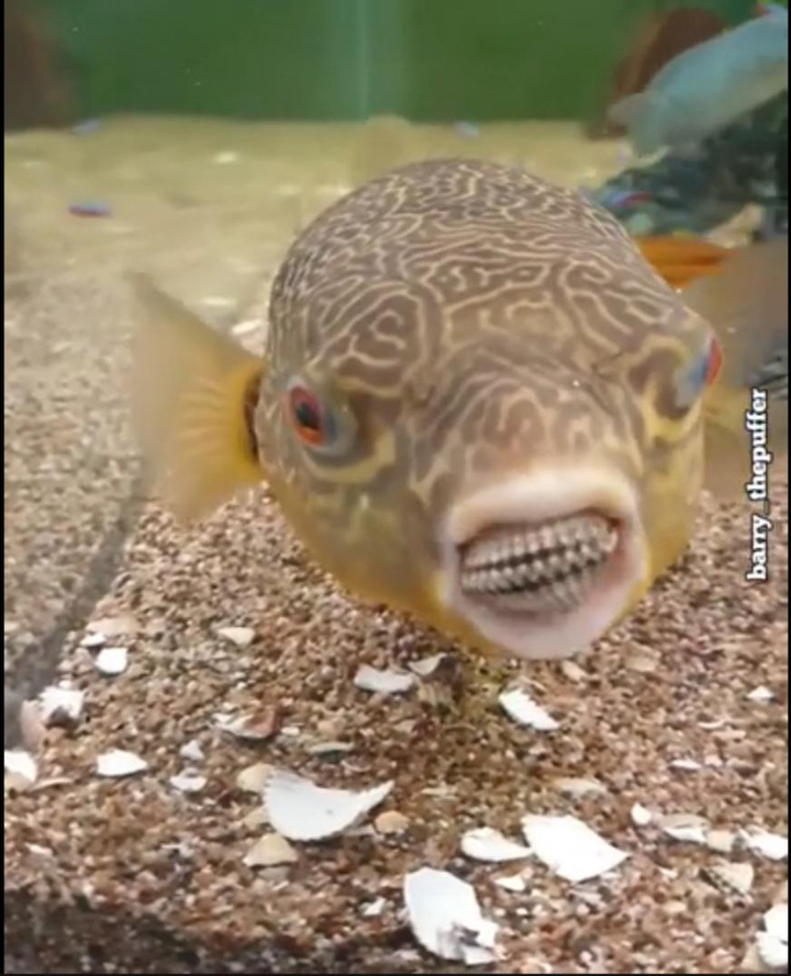 ↑鲀形目的鱼类普遍有着坚硬的大门牙,非常适合打开贝壳封闭的内心