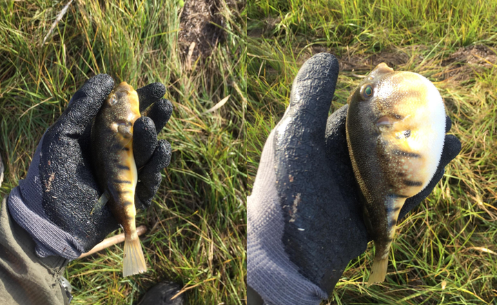 ↑我在新泽西海边钓到的斑点圆鲀,戳一戳就会生气地鼓起来