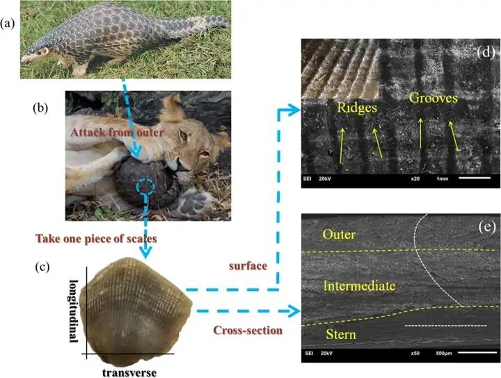 从材料力学的角度来说,穿山甲鳞甲的弹性模量(也即,材料抵抗形变的能力)达到惊人的 6GPa[1],相对来说人类的皮肤就柔嫩得多,弹性模量仅仅 0.5 ~ 1.95 MPa[2]。