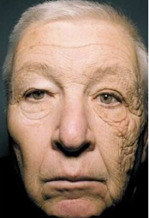如果你分别盖住她的左脸和右脸,你会发现她的右脸单独看起来在 50 岁左右,而单看左脸却足足有 80 岁的样子。