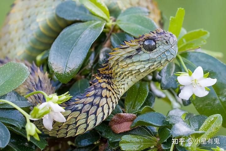 虽然有很多朋友不喜欢蛇,不过建议你们给树蝰一个机会。这类小毒蛇兼具萌态和冷酷质感,绝对是蛇类中的颜值担当。而且由于其细碎的瓦片状鳞片的存在,颇有一种“龙”的感觉。