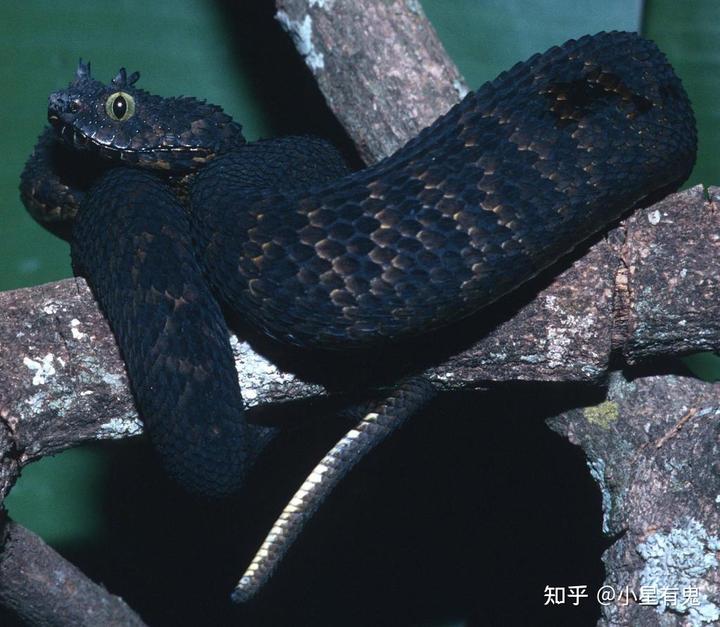 角树蝰 (Atheris ceratophora)黑色个体和动画片《寻龙高手》中的无牙仔神似