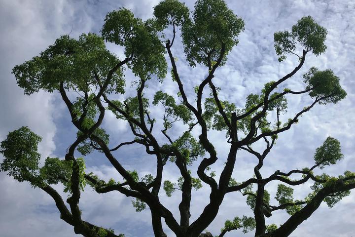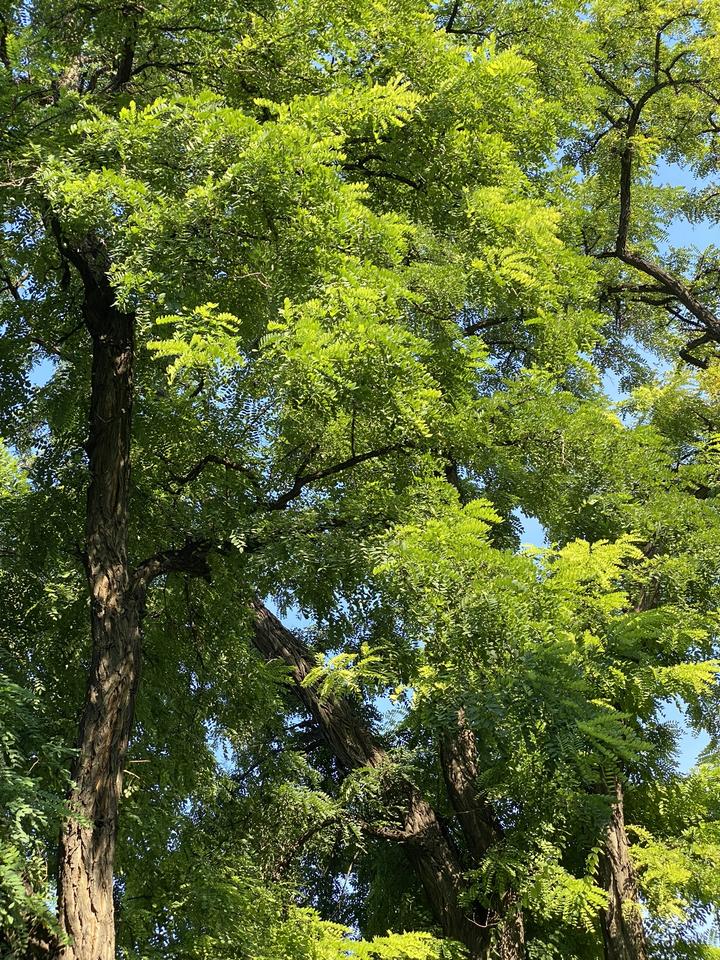 盛夏,繁茂的枝叶长成如绿色的云,我在蓝天映衬下肆意铺展↓