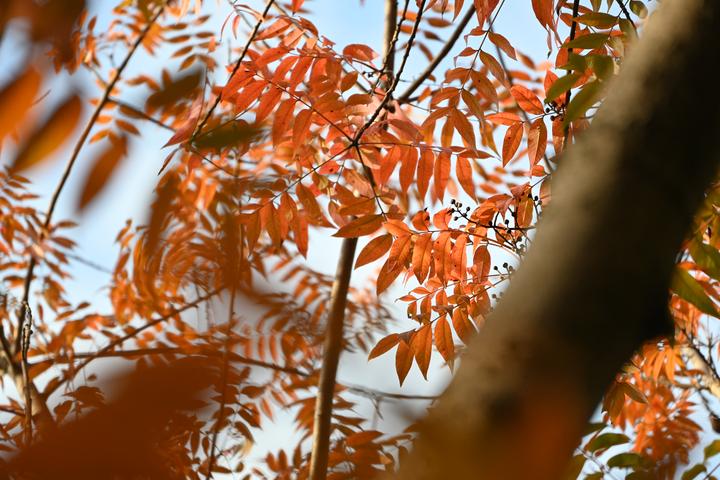 秋风掠过叶尖时,红的更艳,黄的更透,连那点残绿都泛起了金,能看见光在叶间流动↓