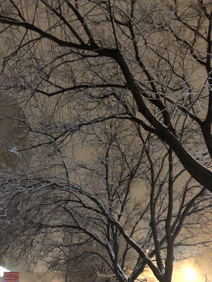 落雪的夜,在枝桠上随手撒了把碎玉,把枝干的轮廓衬得更锋利了,此时只想感觉回家来一整个浑圆的烤红薯↓