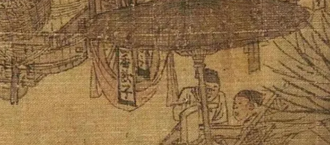 在张泽端的清明上河图里,画了有多卖熟水的摊子,桌子旁坐着两人,旁边还有一辆驴车经过,摊子上面有遮阳伞,还吊着饮子或香饮子的小招牌。那些赶路人渴了,会坐下,点上一碗饮料,消暑解渴,歇歇脚,再赶路。