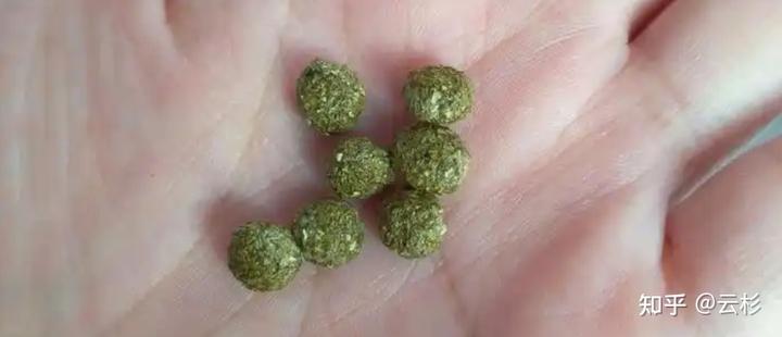 兔子的粪便,以牧草为主食的话,便便就是这种硬颗粒状的植物纤维,基调是草 + 腥味: