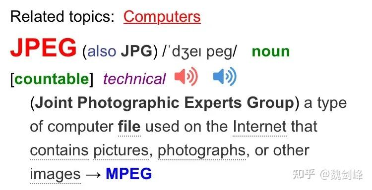 举个例子,JPEG 的全称是 Joint Photographic Experts Group,很多人会把它读成 J-P-E-G,但其实它是一个“首字母拼音词”。它应该读成 /ˈdʒeɪ peɡ/