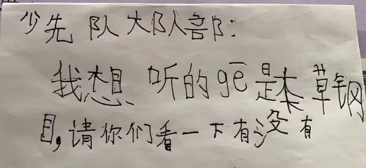 @熹熹玚玚:当年女儿上一年级,有幸选上少先队首批入队。 要去宣誓前,老师让写一下想对大队说的话