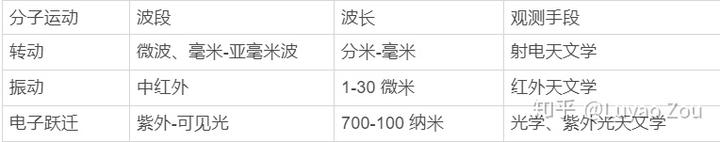 - 只有分子处于气体状态,才能辐射出可分辨的转动光谱。故射电天文学只能获得处在气体状态的星际分子信息,而对附着在星际尘埃或冻结在固态冰中的分子无能为力。