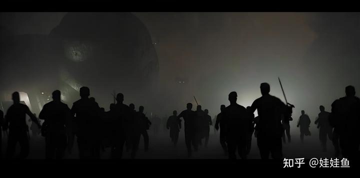 先看两张群像,画面中人物众多但不显杂乱。他们即将向光线照来的地方走去,那里是未知的命运。