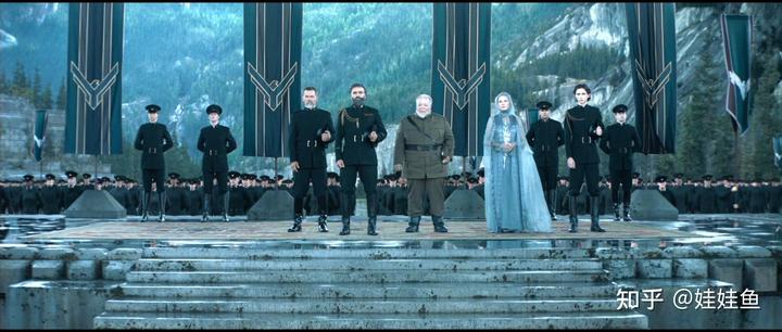 厄崔迪家族的力量源于天空和海洋,服装上体现为蓝、灰、绿色系,受封仪式以山谷自然景观为背景,由植被和远山作为衬托。