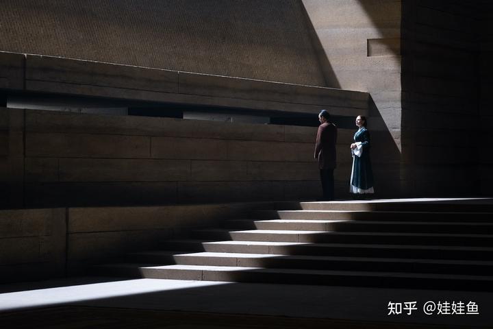 建筑物的线条和光影把空间切割成几何形,逐级而上的阶梯有现代极简风格,又符合古典建筑的"崇高和庄严"。