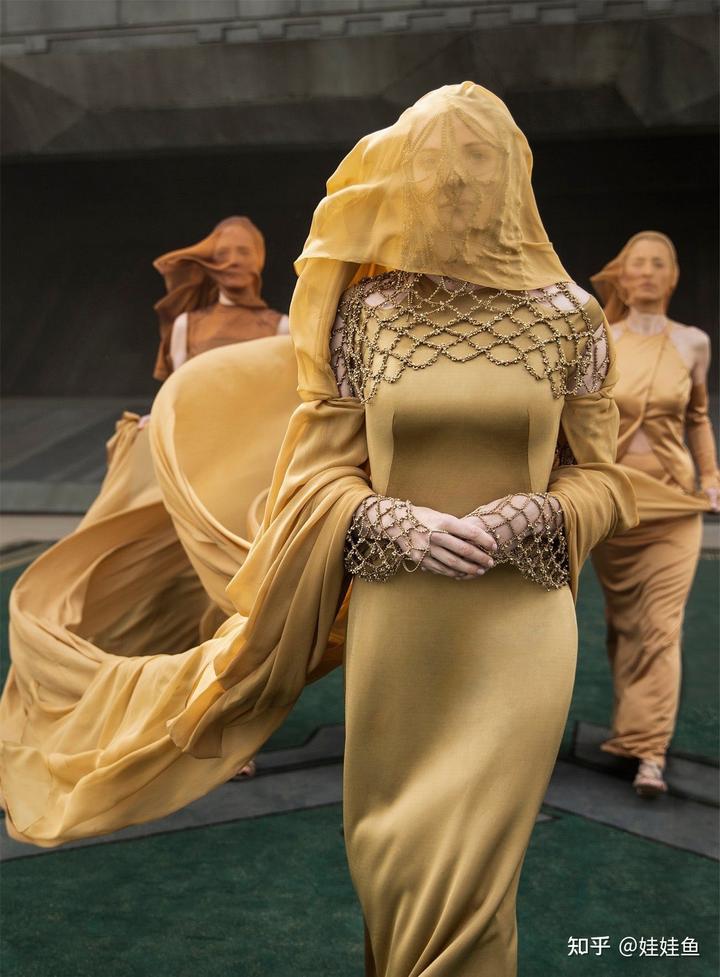 可一到阿拉里斯星球,杰西卡的服装马上就转成和沙漠接近的明黄色,蒙面造型参考了中东女性的装束。