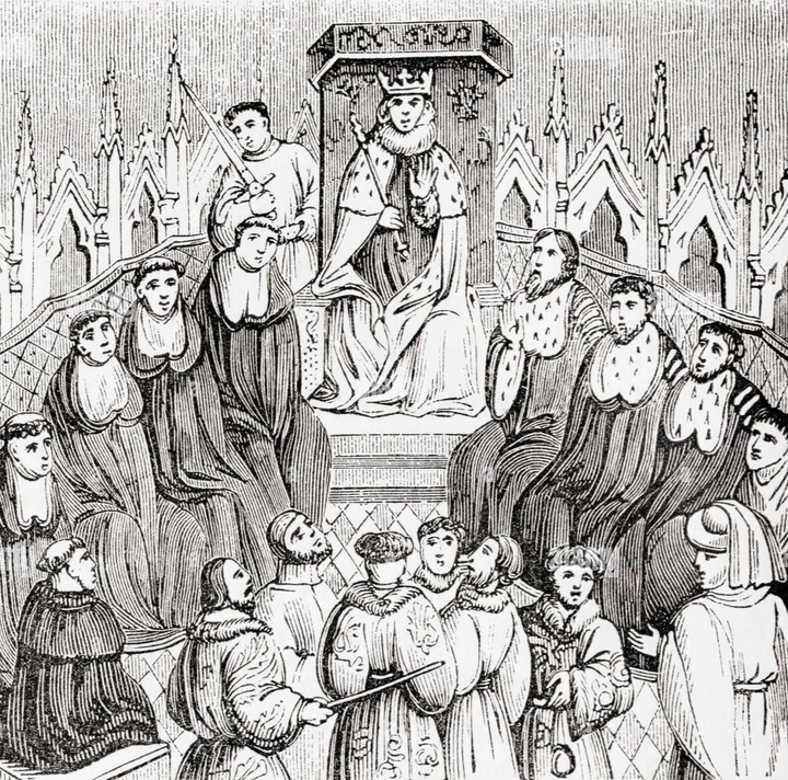 这当然也是源自盎格鲁撒克逊民族的祖宗之法,是从中世纪的贤人会议,和后来的听证会制度延伸而来的动词。